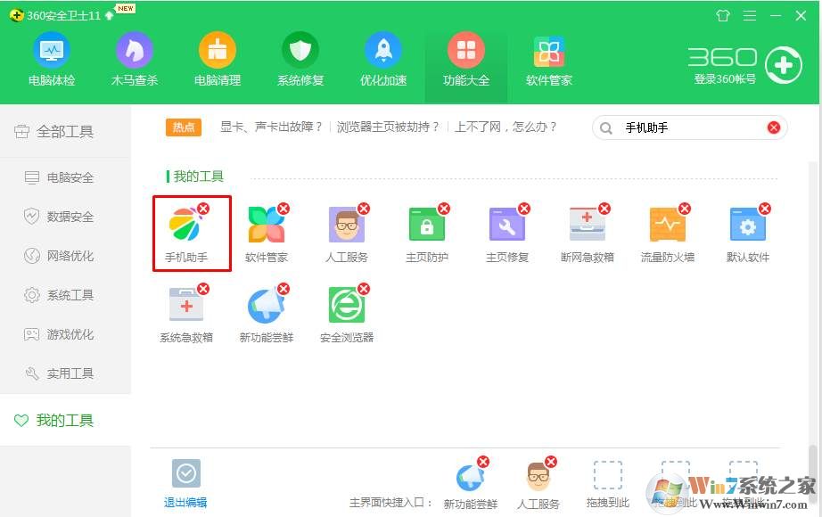 3、在工具中,我們可以看到360手機(jī)助手,再點(diǎn)擊下面的編輯按鈕;