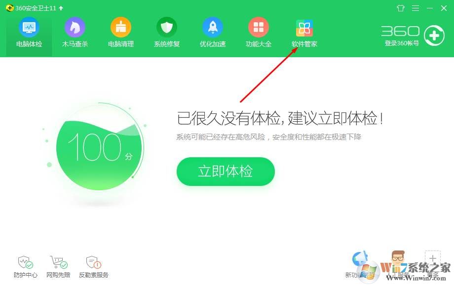 1、首先打開360主界面,然后點(diǎn)擊軟件管家打開;