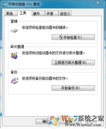 選中讀卡器所顯示的移動設備分區(qū),右鍵單擊,選下出現(xiàn)的選項菜單下面的“屬性”,然后在出現(xiàn)的窗口中選擇“工具”,點擊最上面的“開始檢查”如下圖示: