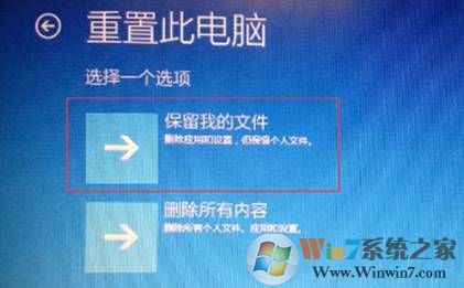 3、可以根據(jù)個(gè)人需要選擇“保留我的文件”或者“刪除所有內(nèi)容”;