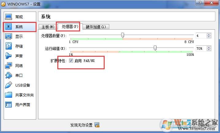 1、打開Windows10的虛擬機配置界面,在 [系統(tǒng)-處理器] 配置頁,勾選 [啟用PAE/NX] 的擴(kuò)展特性