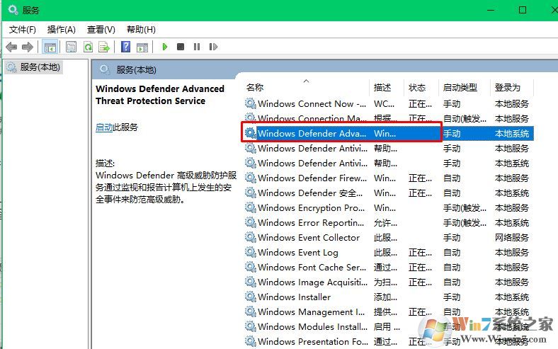 2、Windows+R,輸入“services.msc”回車,在服務(wù)中雙擊Windows Defender Advanced Threat Protection Service服務(wù),在服務(wù)的屬性中先停止服務(wù),然后重新啟動服務(wù),查看是否解決。