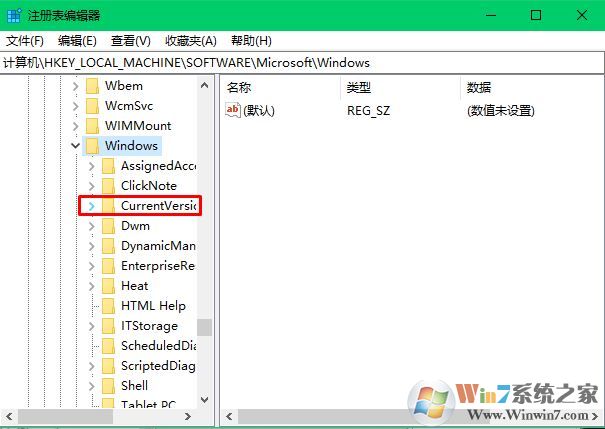 6、在展開(kāi)的文件夾中找到“CurrentVersion”點(diǎn)擊紅色框內(nèi)箭頭所示的文件夾+按扭