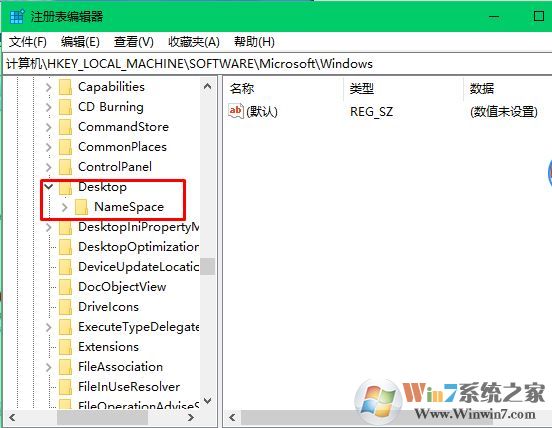 9、點(diǎn)擊紅色框內(nèi)的“NameSpace”文件夾,右邊出現(xiàn)“默認(rèn)”等