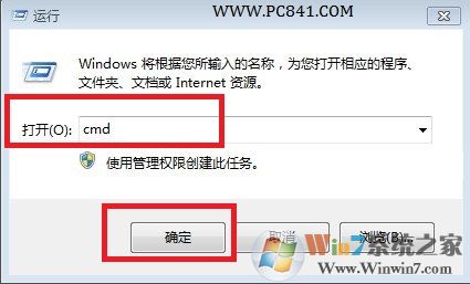 1、使用Win+R組合快捷鍵打開運(yùn)行對(duì)話框,然后在打開后面,鍵入cmd命令,然后點(diǎn)擊底部的確定,如下圖:
