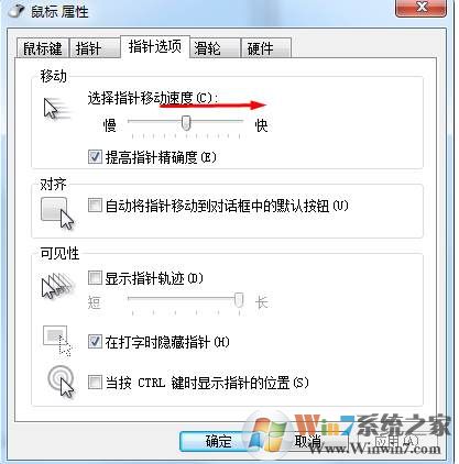 4、如果要調(diào)觸摸板速度,切換到指針選項(xiàng)下,拖動滑塊到快的方向,點(diǎn)擊應(yīng)用,設(shè)置到自己需要的速度為止;
