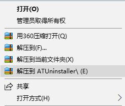 2、解壓附件。鼠標(biāo)右鍵點擊“ATUninstaller.exe”以管理員身份運行;