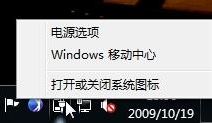 當(dāng)然也可以使用鼠標(biāo)來開啟:右鍵點(diǎn)擊任務(wù)欄系統(tǒng)托盤區(qū)域的電源/電池指示器圖標(biāo),然后選擇“Windows移動中心”,如圖: