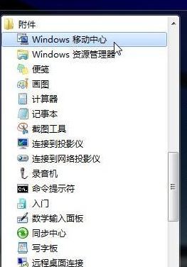 還可以通過點(diǎn)擊開始菜單,依次選擇“所有程序-附件-Windows移動中心”,如下圖所示: