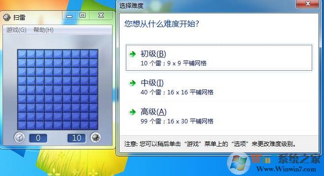 2、初次打開(kāi),會(huì)讓你選擇難度,難度越高,格子越多,雷也就越多。初學(xué)者可以選個(gè)初級(jí),小編已經(jīng)是高手了,選個(gè)中級(jí)吧。