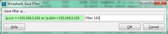 | ip.src ==192.168.1.102 or ip.dst==192.168.1.102 | 源地址或者目標(biāo)地址是192.168.1.102 |