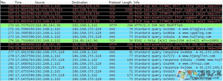 封包列表的面板中顯示,編號(hào),時(shí)間戳,源地址,目標(biāo)地址,協(xié)議,長(zhǎng)度,以及封包信息。 你可以看到不同的協(xié)議用了不同的顏色顯示。