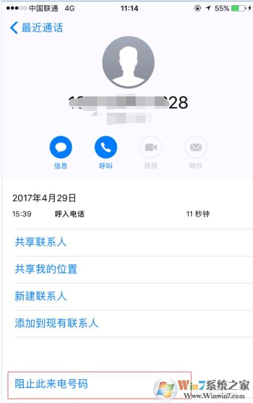 2、出現(xiàn)詳細的來電信息之后,我們可以在下方看到“阻止此電話號碼”選項,沒錯,就點它。