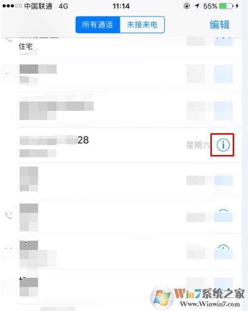 1、我們先打開通話記錄,然后找到在加黑名單的電話號碼,并點擊右邊的 詳細圖標