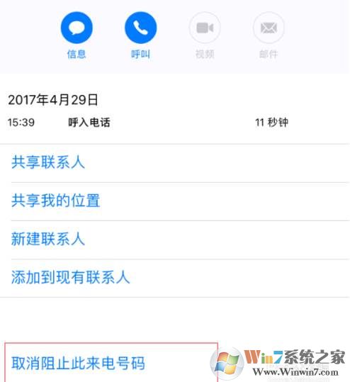 4、如果確認了,阻止此來電號碼這幾個字會變成取消阻止此來電號碼這幾個字,要解除阻止也可以點這里取消。