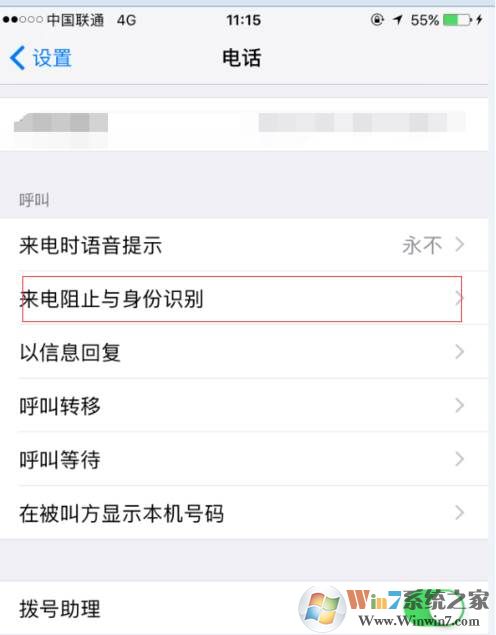 3、這里看到,來(lái)電阻止與身份識(shí)別 點(diǎn)擊進(jìn)去;