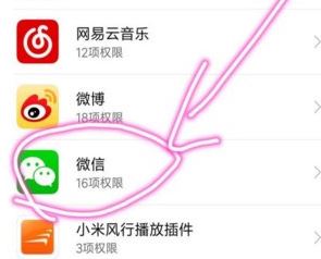 3、找到【微信】,點(diǎn)擊打開(kāi)微信授權(quán)管理界面,如下圖所示。