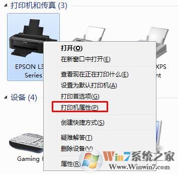 2、找到你要配置端口的打印機(jī),右鍵——打印機(jī)屬性;