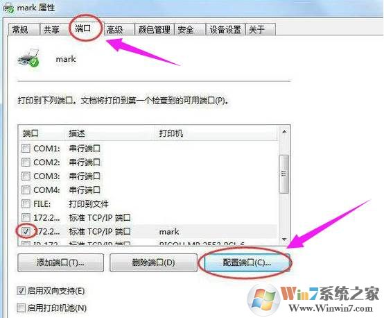 4、如果是網(wǎng)絡(luò)打印機(jī),點(diǎn)擊配置端口(一般是標(biāo)準(zhǔn)TCP/IP端口)