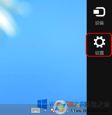 第一步、移動鼠標(biāo)指針至屏幕右上角,直至出現(xiàn)超級按鈕(Charm菜單),點擊“設(shè)置”。