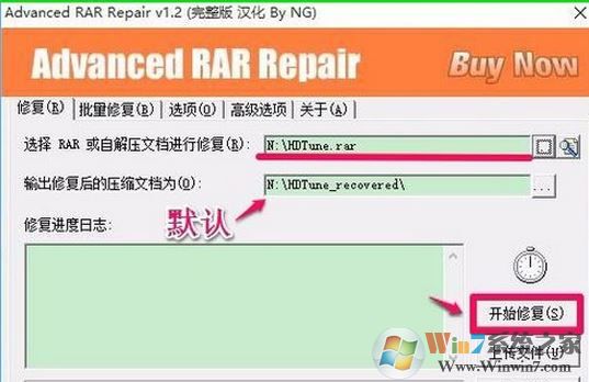 4、點軟件放大鏡旁邊的三個點按鍵找到壓縮包路徑然后確定選擇開始修復(fù);