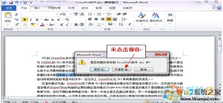 方法一:如果修改了以前保存過的一篇文檔,只是退出時(shí)沒有保存修改結(jié)果: