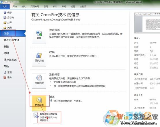 4、點(diǎn)擊版本管理版本—選擇恢復(fù)未保存的文檔即可。