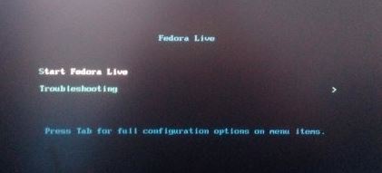 2、選擇 Start Fedora Live 我們耐心稍等一兩分鐘。如果此時(shí)界面跳出一些error/warning提示,可能是系統(tǒng)沒(méi)有成功導(dǎo)入U(xiǎn)盤(pán),此時(shí)需要格式化U盤(pán),重新使用PowerISO導(dǎo)入Fedora系統(tǒng)鏡像。