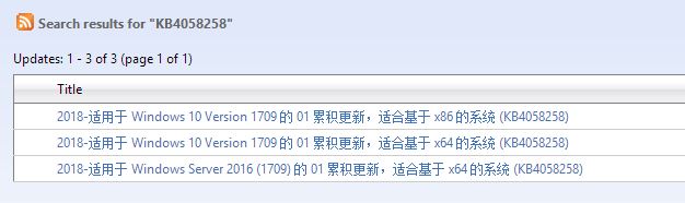 2、打開后在右上角搜索框中輸入需要更新的補丁,如:KB4058258 然后點擊 search 進行搜索;