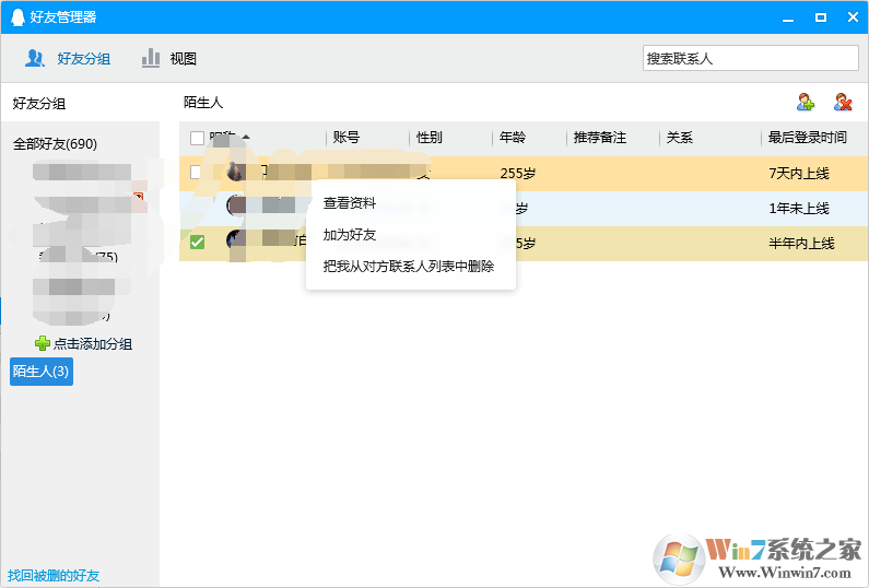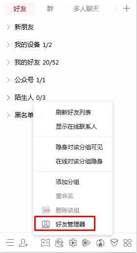 1、在聯(lián)系人界面,右鍵點(diǎn)擊,選擇“好友管理器”;