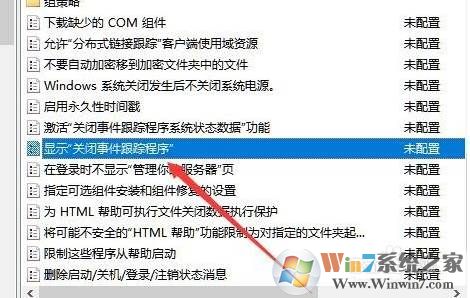 3、在打開(kāi)的窗口右側(cè)找到“顯示關(guān)閉事件跟蹤程序”設(shè)置項(xiàng)。