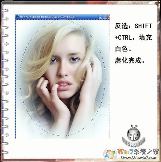 5、然后用Shift+Ctrl+I反選,把需要保留的位置以外的圖片位置框選上。直接在編輯爛里選擇填充,填充白色