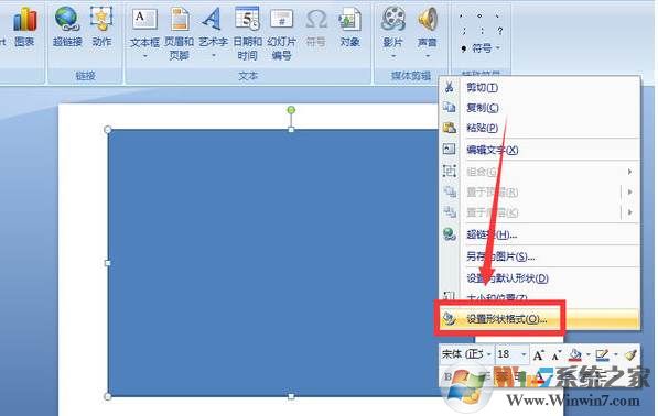 2、這里我們要選擇一個(gè)和你插入的圖片差不多大和矩形,右擊這個(gè)矩形,選擇“設(shè)置形狀格式”;