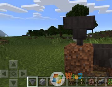1、首先要在地面上放置一個泥土,然后拿出漏斗,點擊任意一面,就會放置在這一面,如圖: