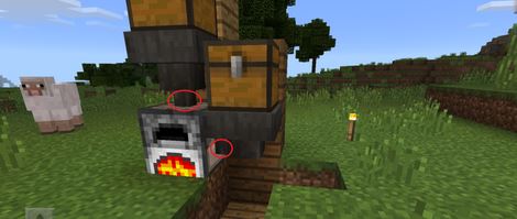 注:漏斗必須點擊熔爐所在的方塊才行,不動的玩家可以參考下圖中小編圈起的紅圈位置