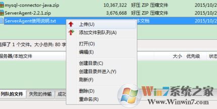 4、選擇待上傳的文件,右鍵再選擇上傳就可以將需要傳到服務(wù)器的文件進(jìn)行上傳;