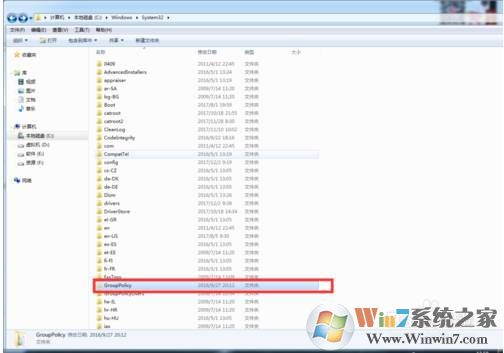 1、我們找到C盤windows\system32\GroupPolicy這個文件夾,然后刪除里面的內(nèi)容;詳情參考下圖