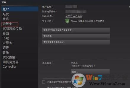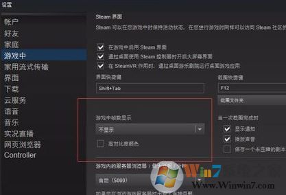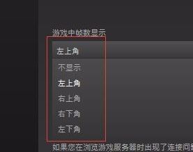3、進入“游戲中”設置界面,在圖中圈出的位置可以設置FPS顯示位置和對比顏色,如圖: