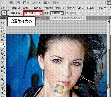 (2)確定“人物 2.tif”文件為激活狀態(tài),在工具箱中選擇“吸管”工具,并對(duì)其選項(xiàng)欄進(jìn)行設(shè)置。