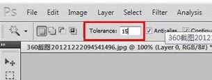 4、為了讓LOGO和背景能夠更好的分開,我們將容差設(shè)置一下,見下圖: