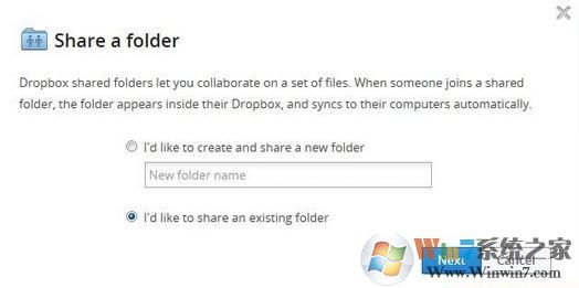 2、如果選擇共享現(xiàn)有的文件夾,點下一步會讓你選擇Dropbox上已經(jīng)有的文件夾。