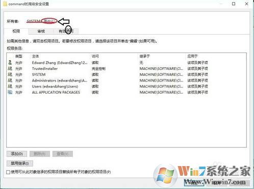 6、所有者后面,點(diǎn)擊更改;