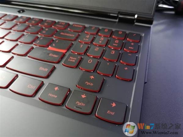 C面,拯救者Y7000采用了全鍵盤設(shè)計,比較特別的是,小鍵盤區(qū)被放置到了上下左右鍵的正上方,兩者合并到了一起,雖然小鍵盤因此省去了Enter鍵,但上下左右鍵卻保留了正常尺寸。