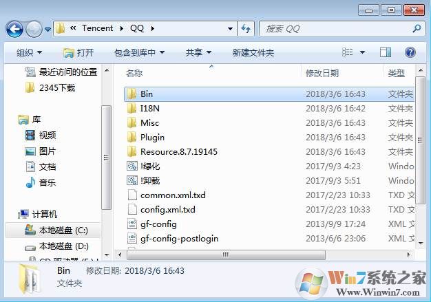 3、打開QQ的安裝目錄之后,我們退回到上一個文件夾,也就是QQ文件夾,可以看到有卸載的程序;