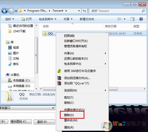 5、這時你會發(fā)現(xiàn),QQ文件還在,是的,這里的卸載只是幫助你清除了注冊表及一些相關(guān)組件,我們再把QQ文件夾整個刪除即可。