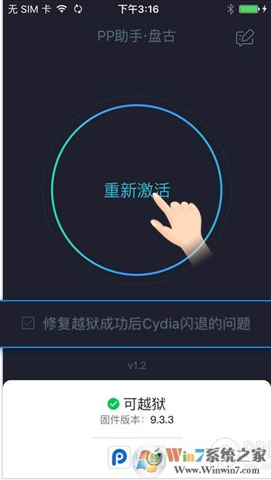 此時(shí)再次打開PP盤古越獄工具,再進(jìn)行一次越獄操作即可恢復(fù)越獄