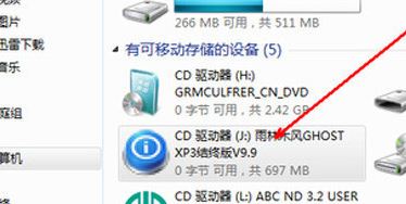 4、使用軟件加載完成后,在計(jì)算機(jī)首頁中,就可以看到我們剛才加載的虛擬鏡像,是作為一個真實(shí)的光驅(qū)來顯示的,?如圖,如果你想打開,就雙擊這個驅(qū)動器就可以了。