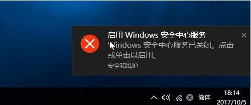 刪除之后,就算安全中心服務(wù)關(guān)閉的狀態(tài)下,也不會(huì)出現(xiàn)提示了。