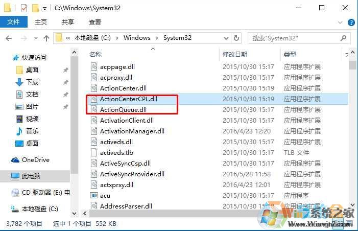 2.、打開c:\windows\system32目錄,找到ActionCenter.dll" and "ActionCenterCPL.dll"兩個(gè)文件