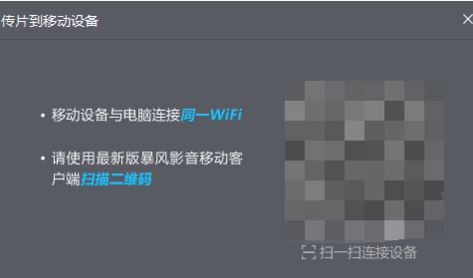 2、打開傳片助手主界面后,使用手機(jī)或平板電腦,打開暴風(fēng)影音移動(dòng)app,通過(guò)掃一掃進(jìn)行連接。(演示手機(jī)為iPhone);